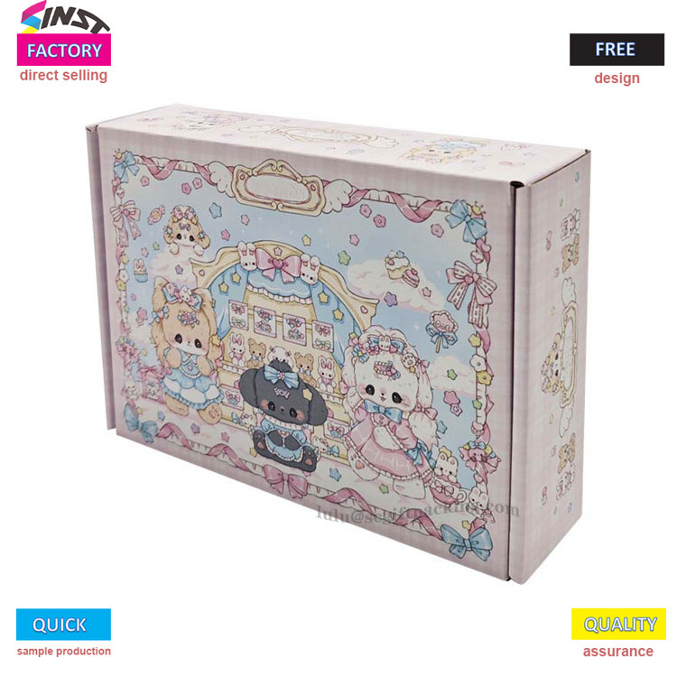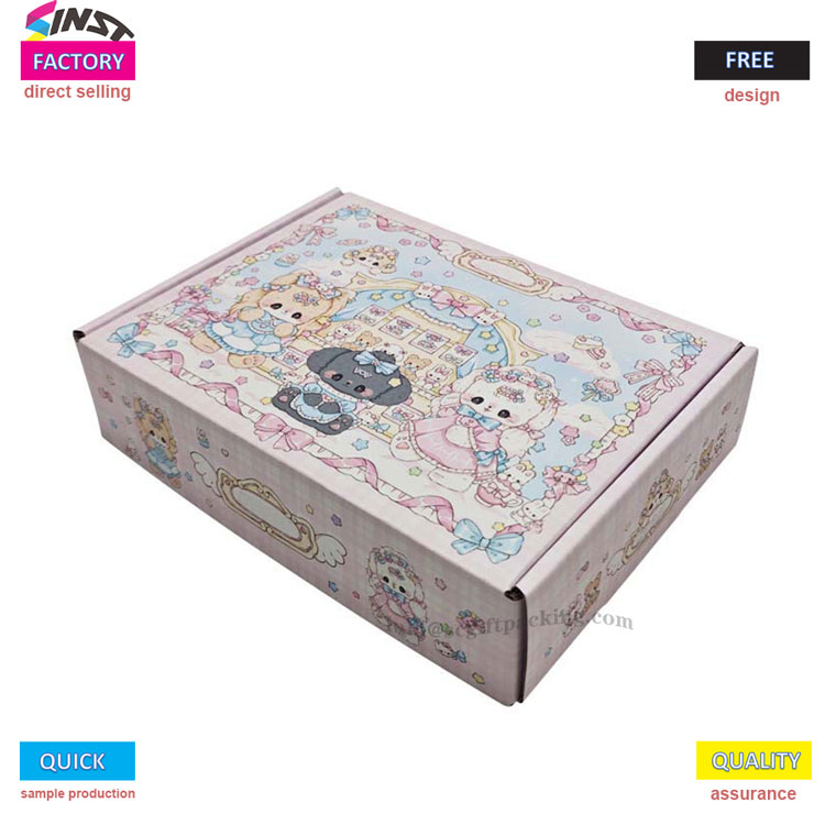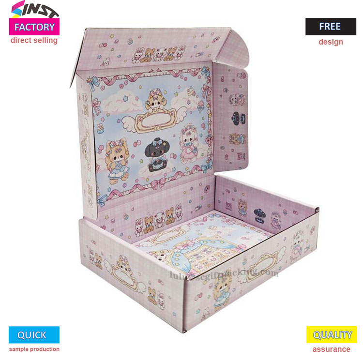 衣服用のカラフルな波形紙飛行機の飛行機は、明るい青のアクセントを備えた甘いピンクの配色を特徴としています。箱には、花の花輪、小動物、弓、雲、心などの漫画の要素が満たされており、夢のようなかわいいスタイルを作り出しています。外観からサービスまで、それは衣料品の包装を完全に強化し、ブランドの魅力を強化します。