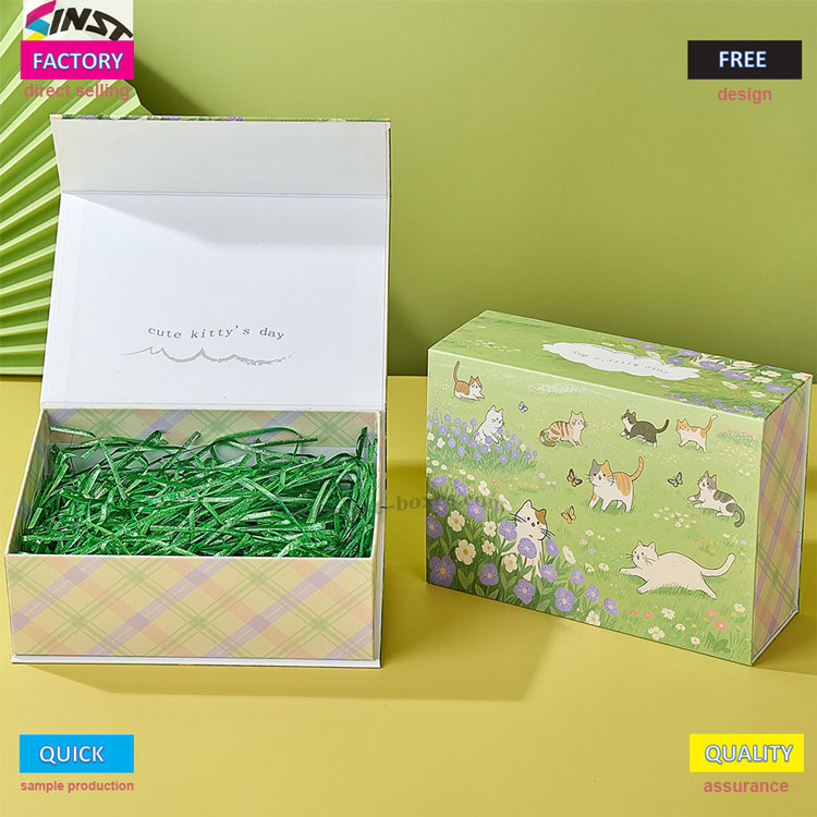 ライトグリーンとベージュのチェック柄を組み合わせた、一目見ると気分が上がる、キュートで癒し系のぬいぐるみペンダントギフトボックスです。かわいい猫のぬいぐるみペンダントギフトボックスは厚いボール紙でできており、正方形で変形しにくく、ぬいぐるみペンダントやキーチェーンを取り付けるときに潰れません。開封方法は非常に特殊で、フリップデザインと緑色のラフィットの裏地が付いており、赤い封筒を開けるようなギフトを開ける儀式のような感覚を与えます。