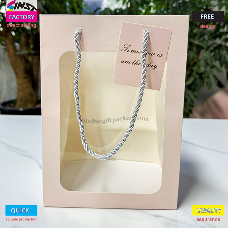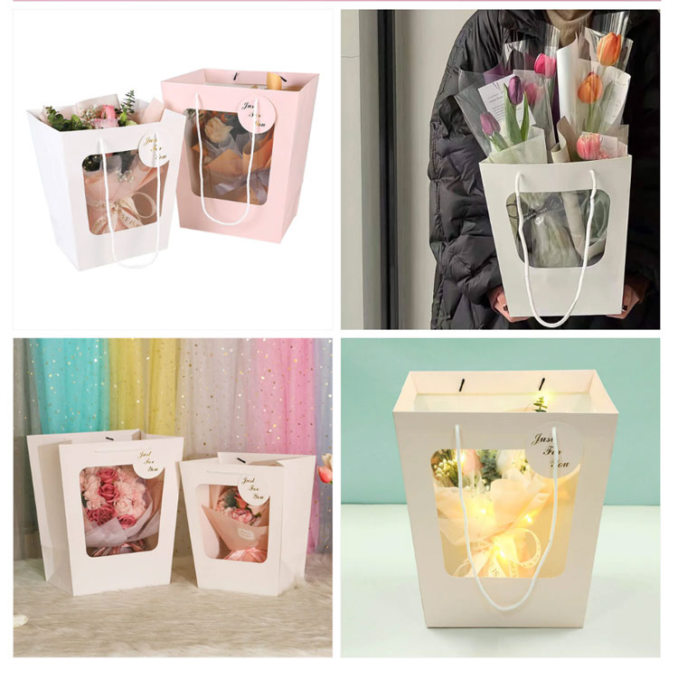 この製品は、ブーケの形状を視覚的に表示するために高品質の段ボールと透明な窓で設計された透明なウィンドウブーケトートバッグです。ハンドルは3本のストランドリフティングロープで、強力な負荷をかける容量を持ち、環境に優しいです。新鮮なフラワーショップ、ギフトブランド、結婚式用品バッグに適したカスタマイズされたブランドロゴとホットスタンピングパターンのバルク調達をサポートします。ブーケパッケージングバッグと窓のオープニングギフトバッグの高品質の選択肢として、美学と実用性を組み合わせています。